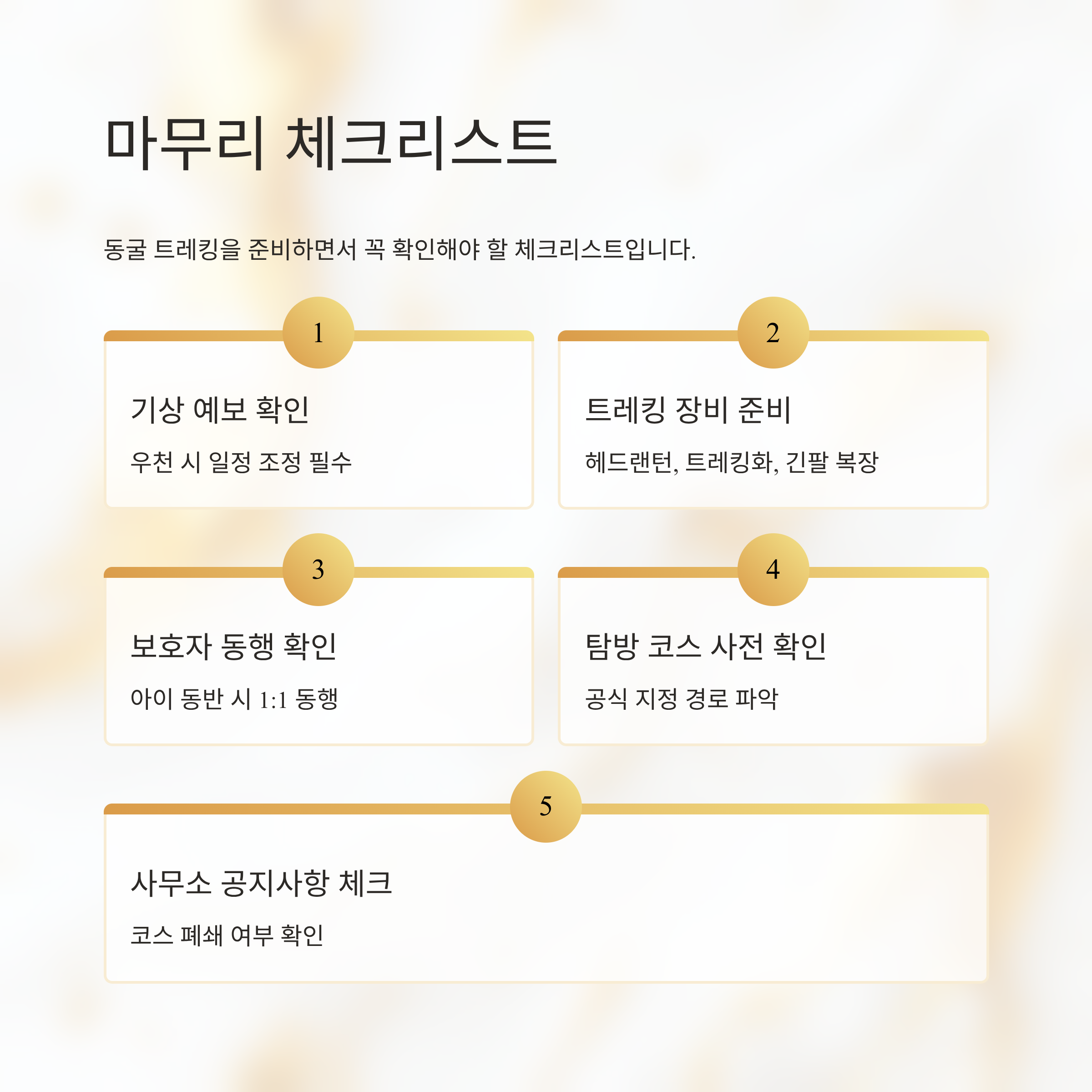 마지막으로 동굴 트레킹을 준비하면서 꼭 확인해야 할 체크리스트입니다.