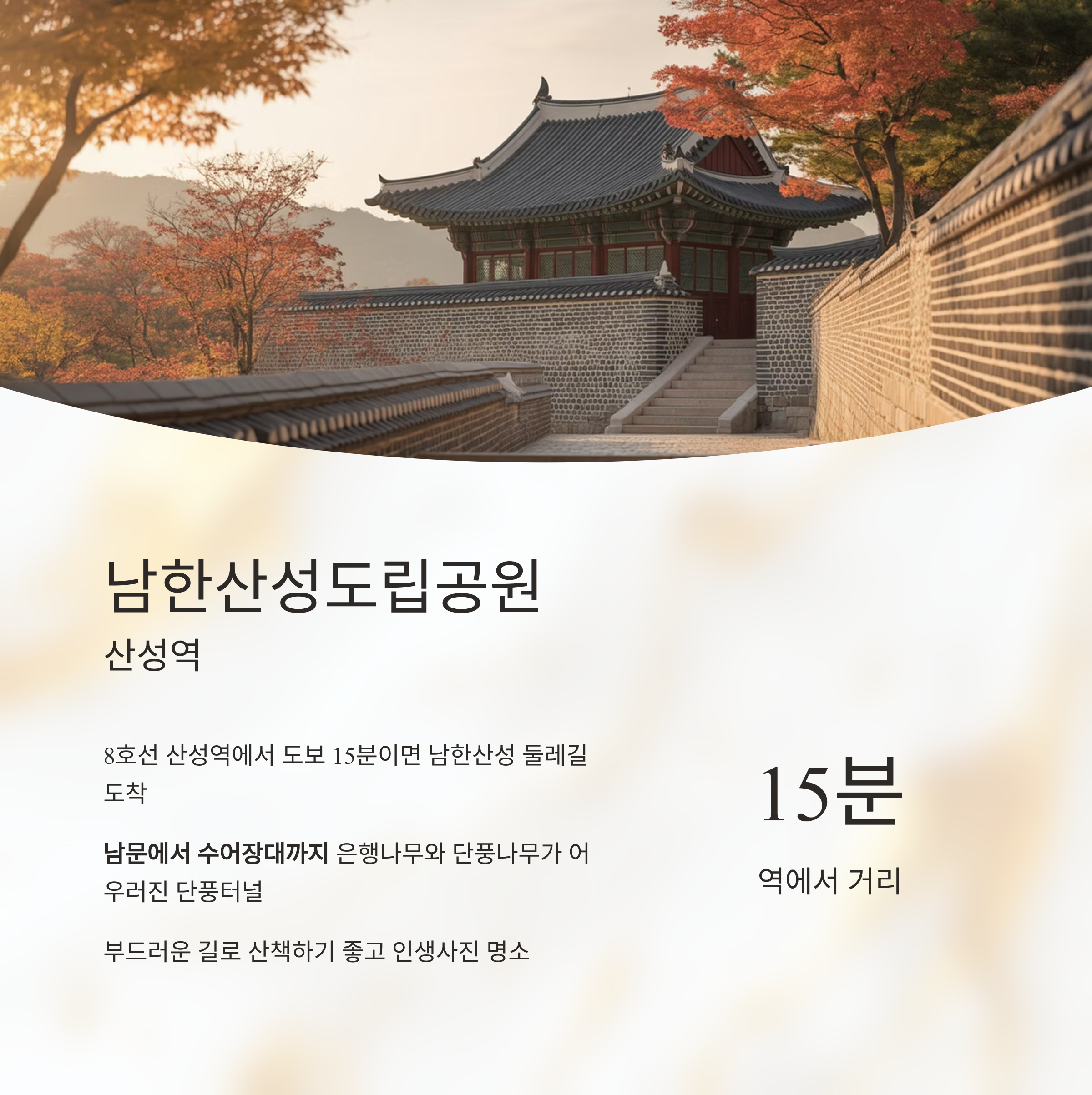 | 성남 | 남문~수어장대 | 단풍터널+산성 배경 |