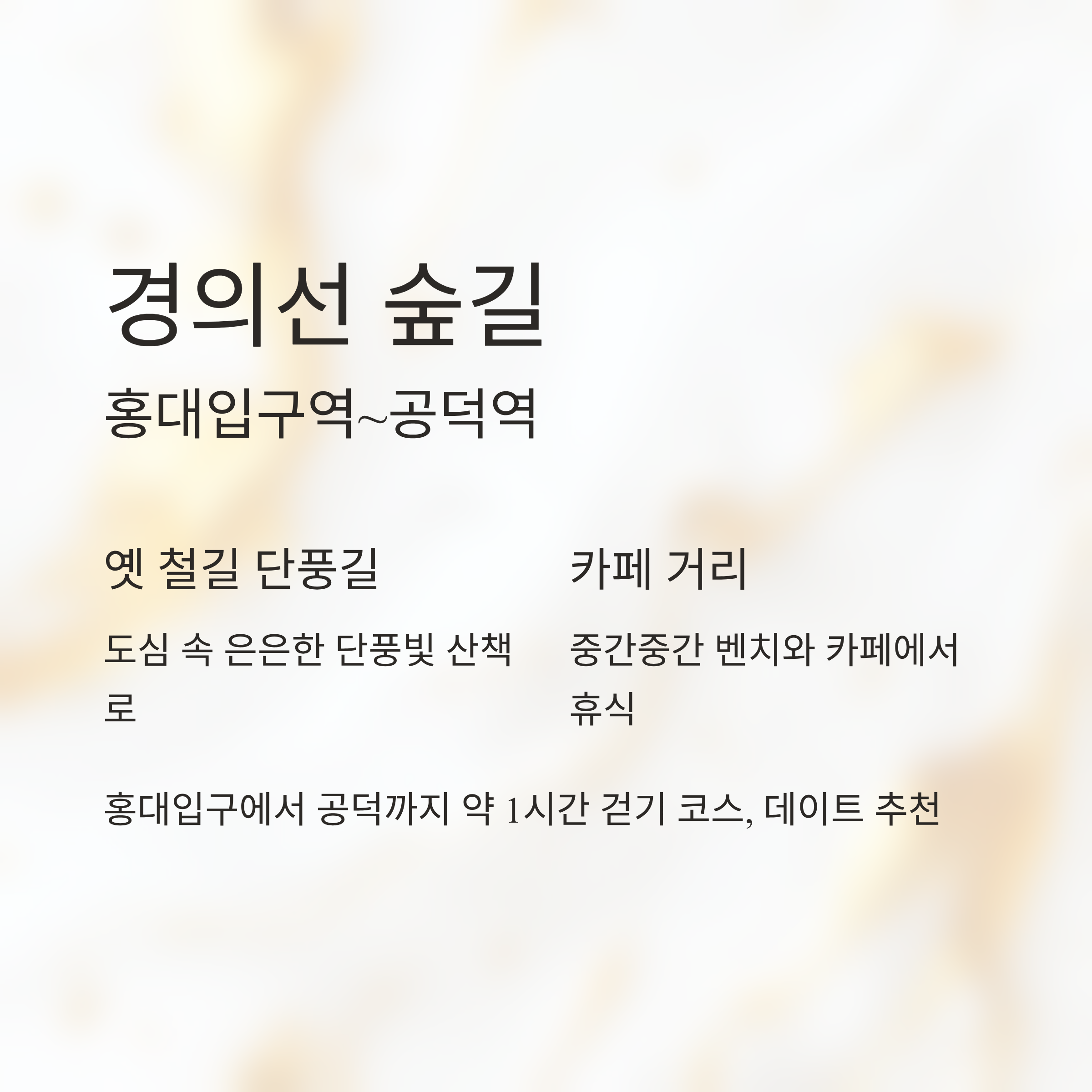 | 서울 | 홍대입구역 | 경의선 숲길 | 도심 단풍 산책 |