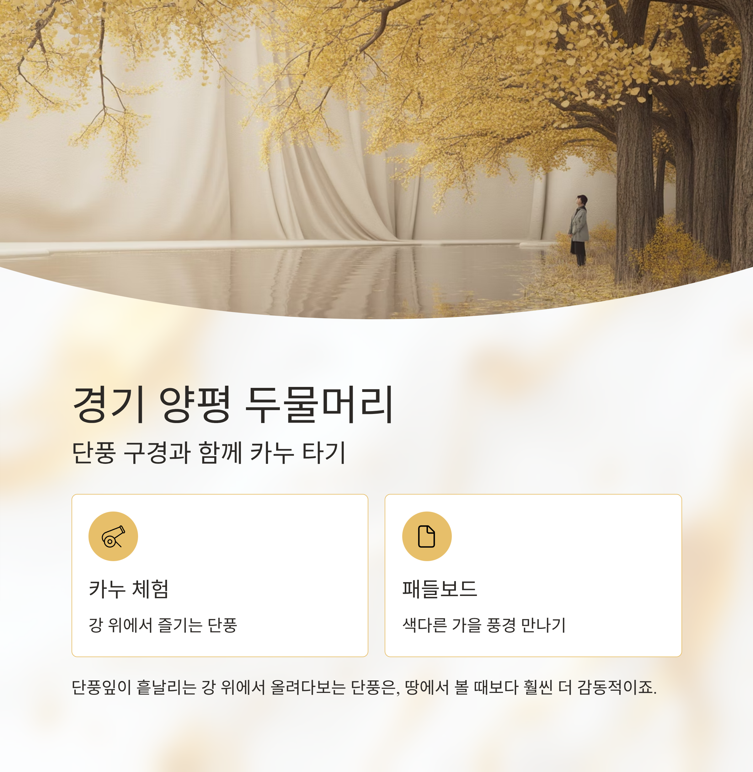 | 경기 양평 | 두물머리 | 카누, 패들보드 | 강변 은행나무 단풍길 |