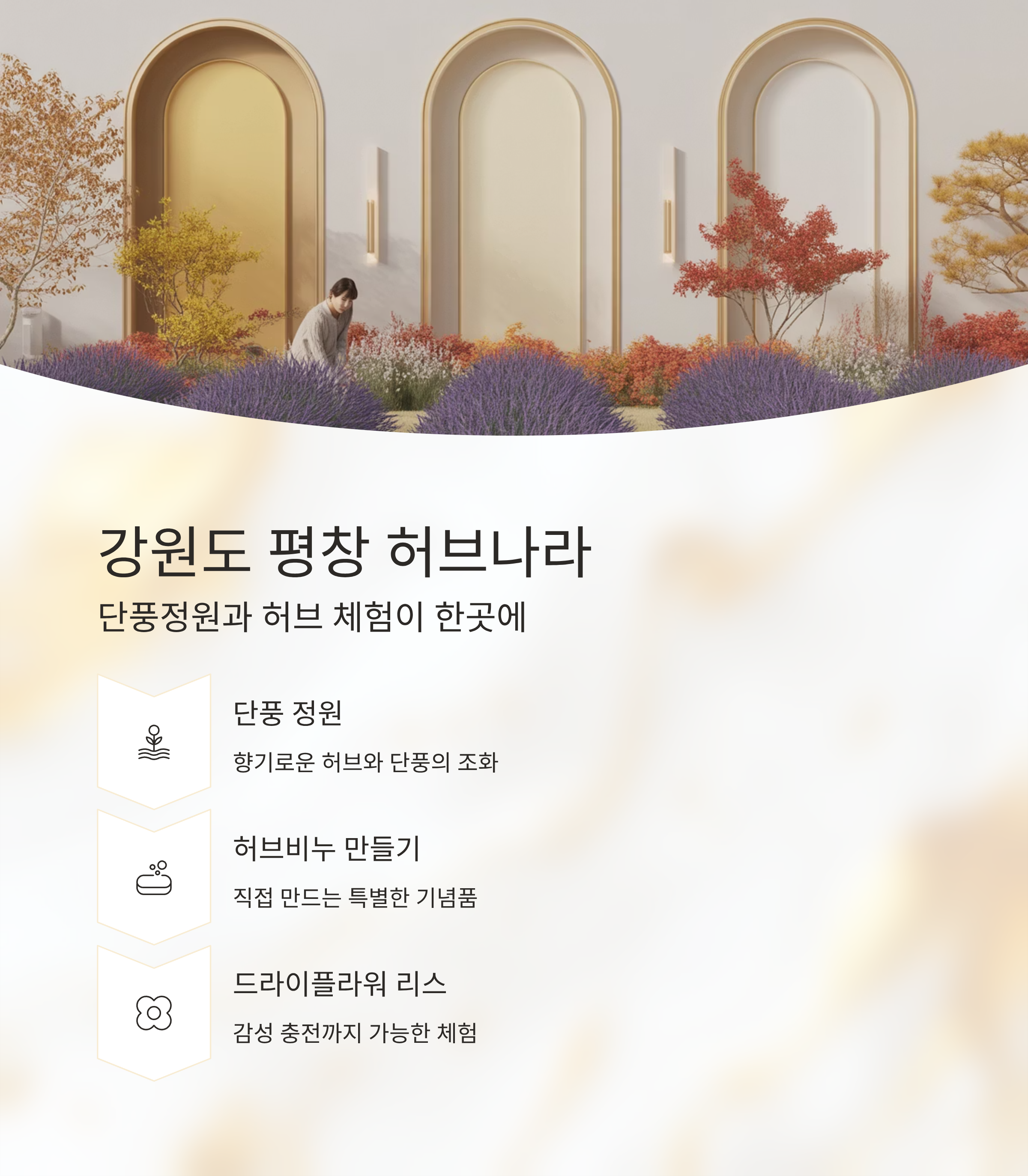 | 강원 평창 | 허브나라 | 허브비누, 플라워 리스 만들기 | 정원식 단풍과 향기 체험 |