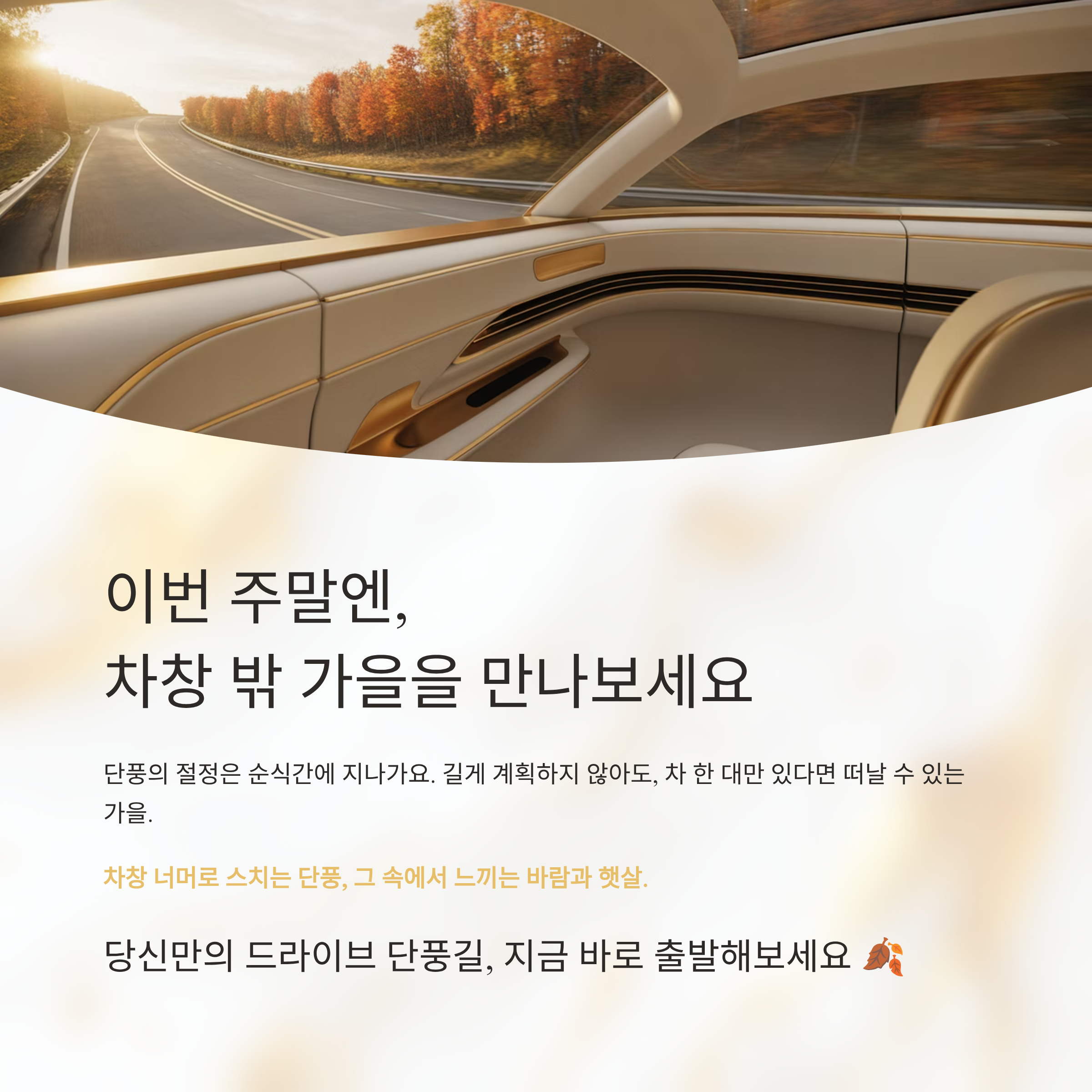 당신만의 드라이브 단풍길, 지금 바로 출발해보세요.