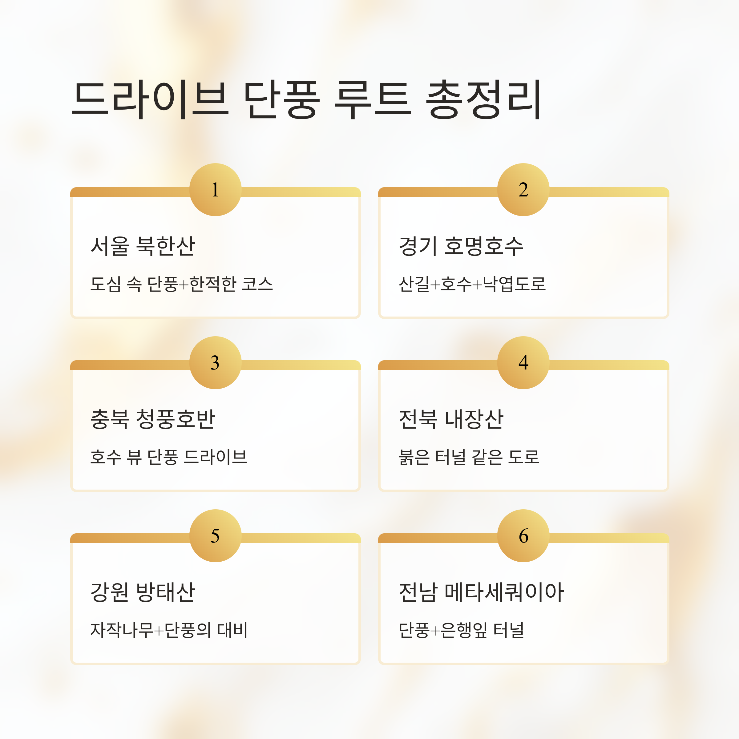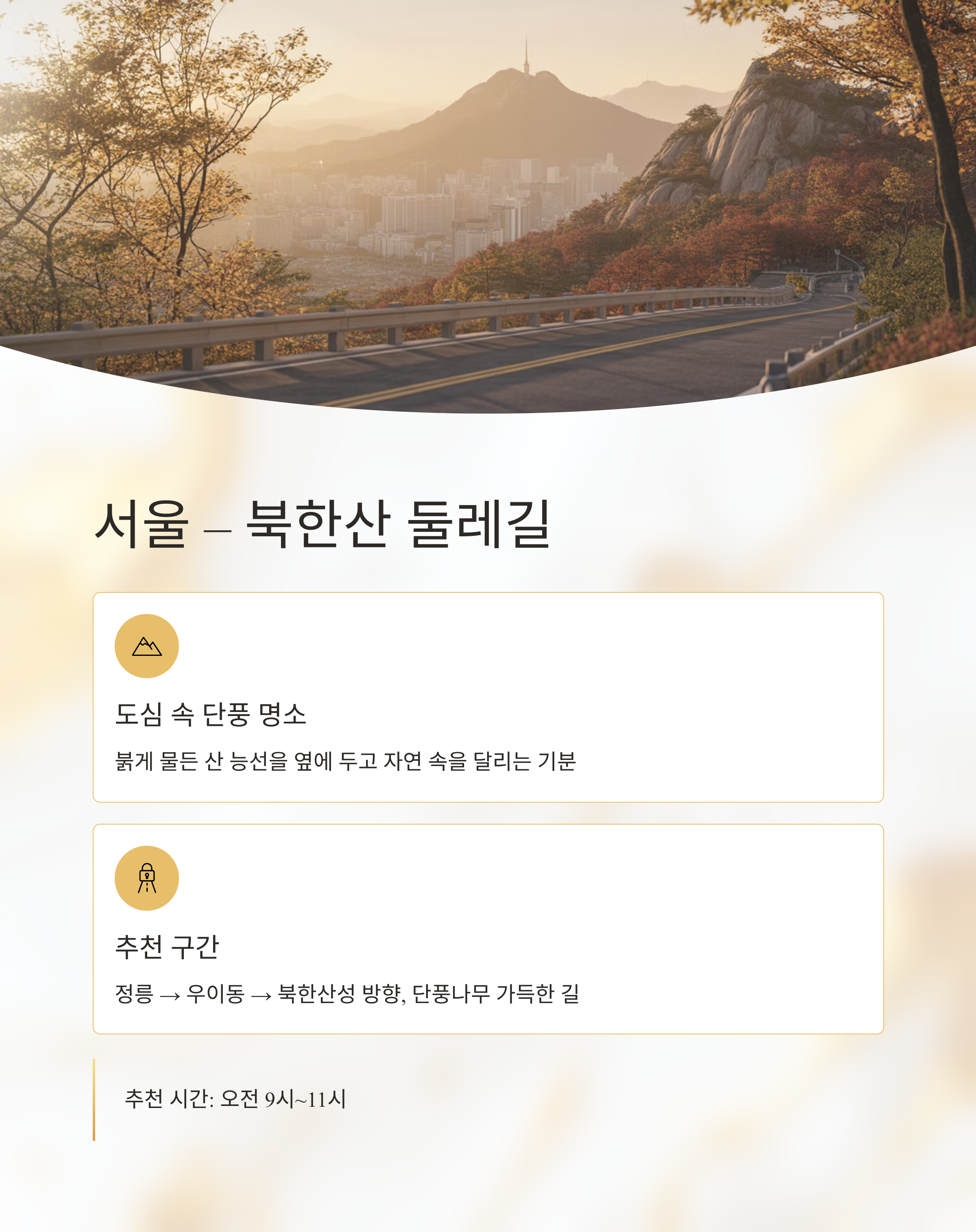 꼭 여행이 아니어도, 주말 오후 잠깐 나서도 좋을 단풍 드라이브 코스입니다.