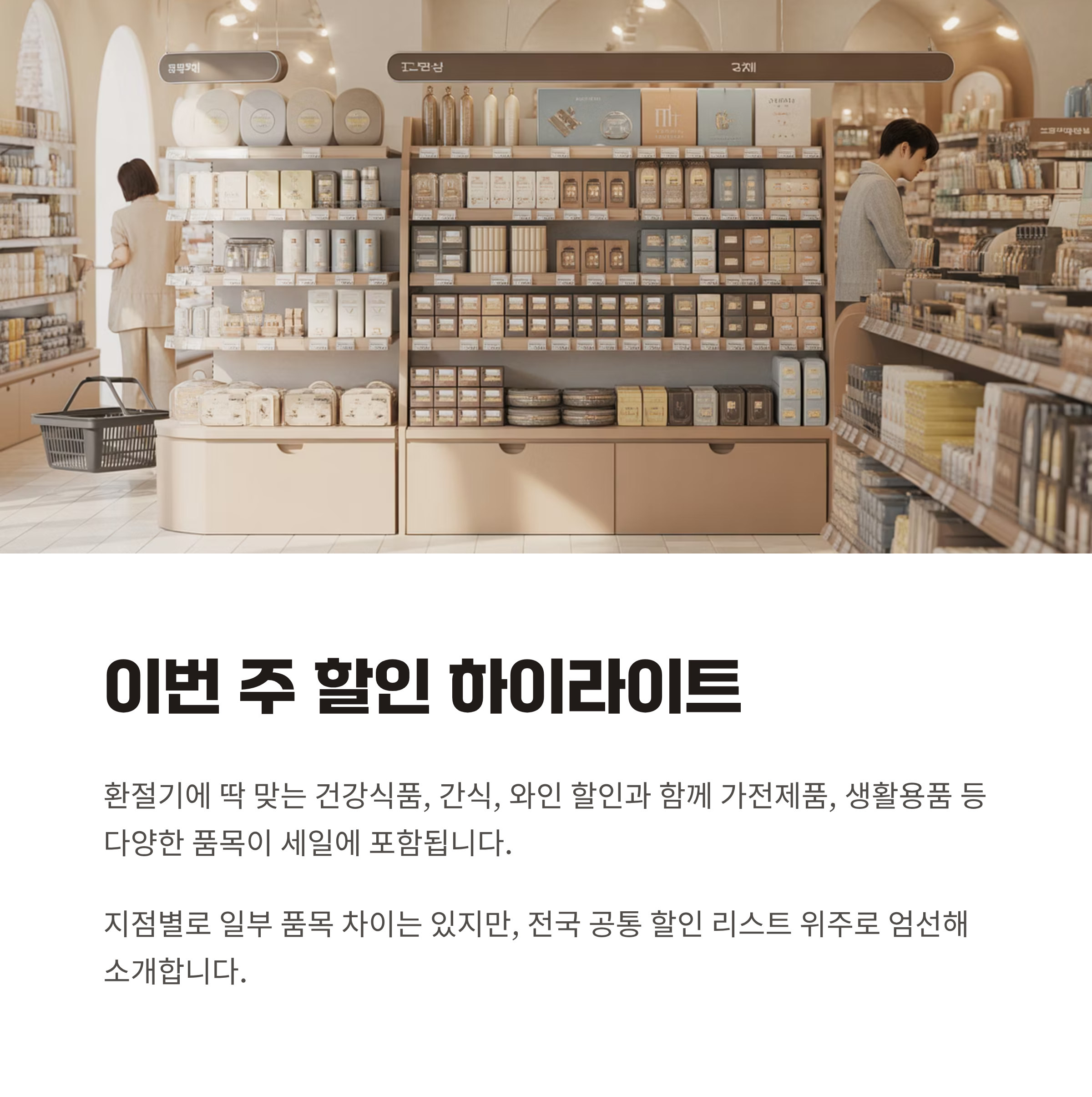 지점별로 할인 적용 품목에 미세한 차이가 있어요.
