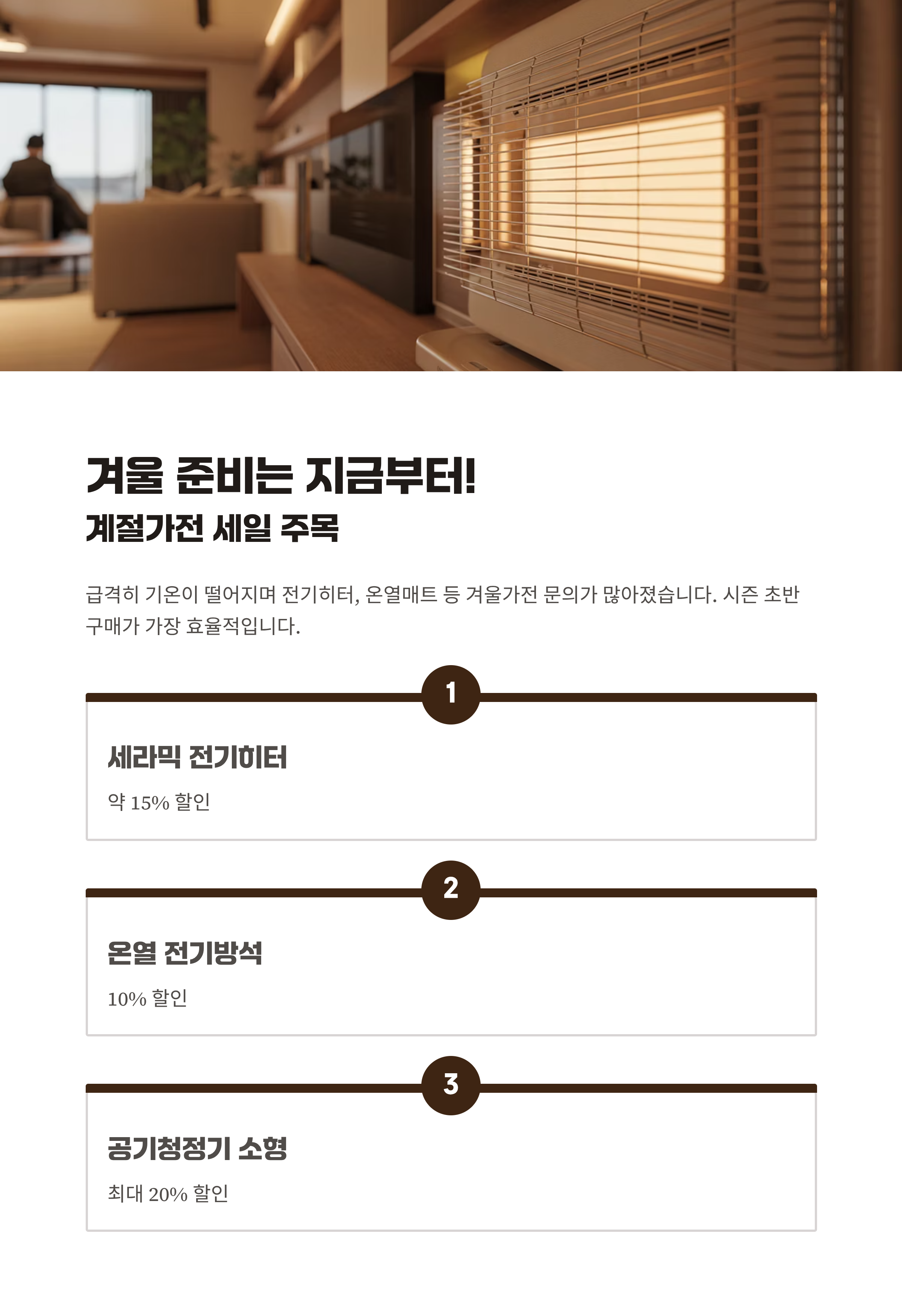 겨울 준비는 지금부터! 계절가전 세일 주목