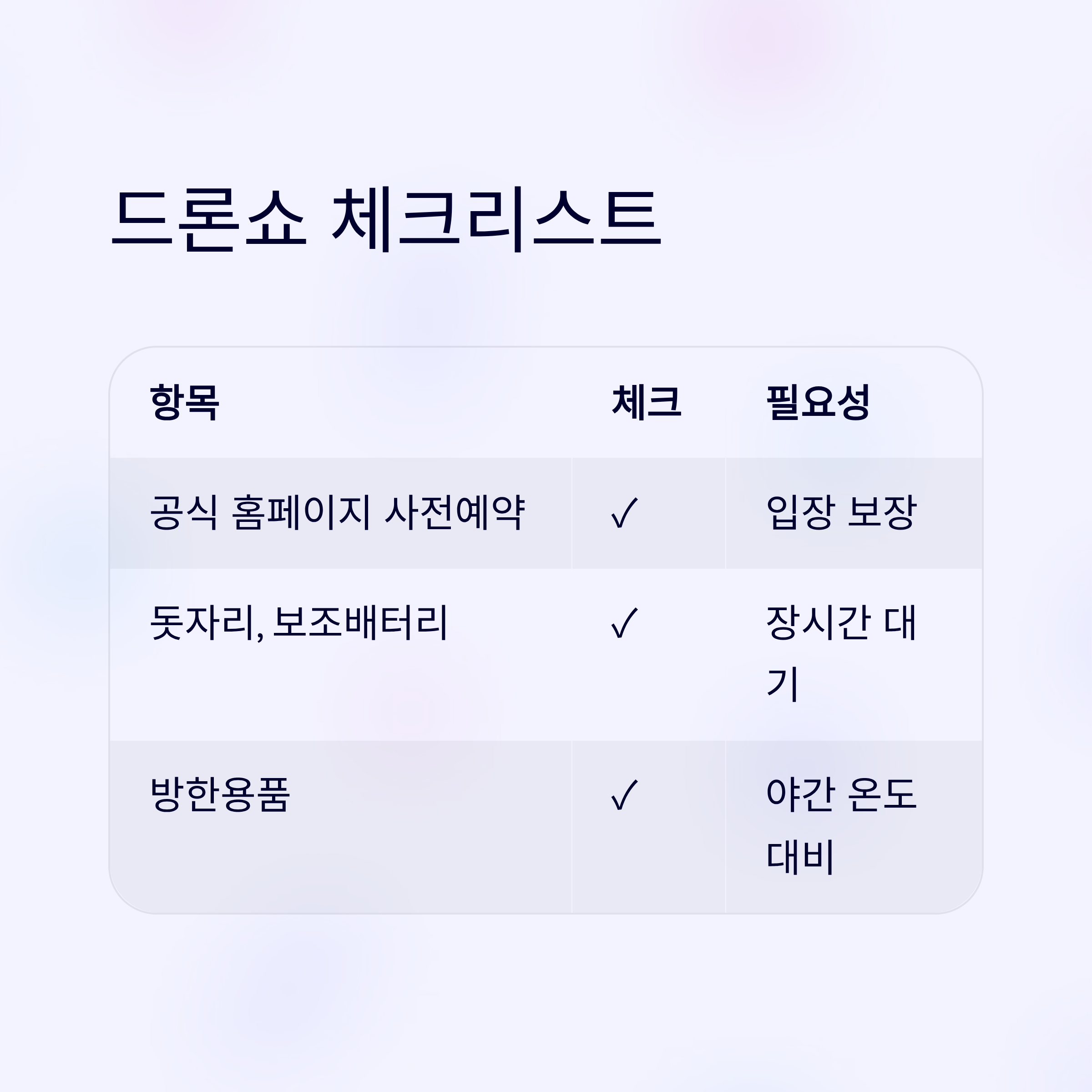 공식 일정 발표 이후 검색량이 급증하고 있는데요, 드론쇼 관람 꿀팁부터 위치, 주차, 명당 자리까지 전부 정리된 글을 찾는 분들을 위해 이번 포스팅을 준비했습니다.