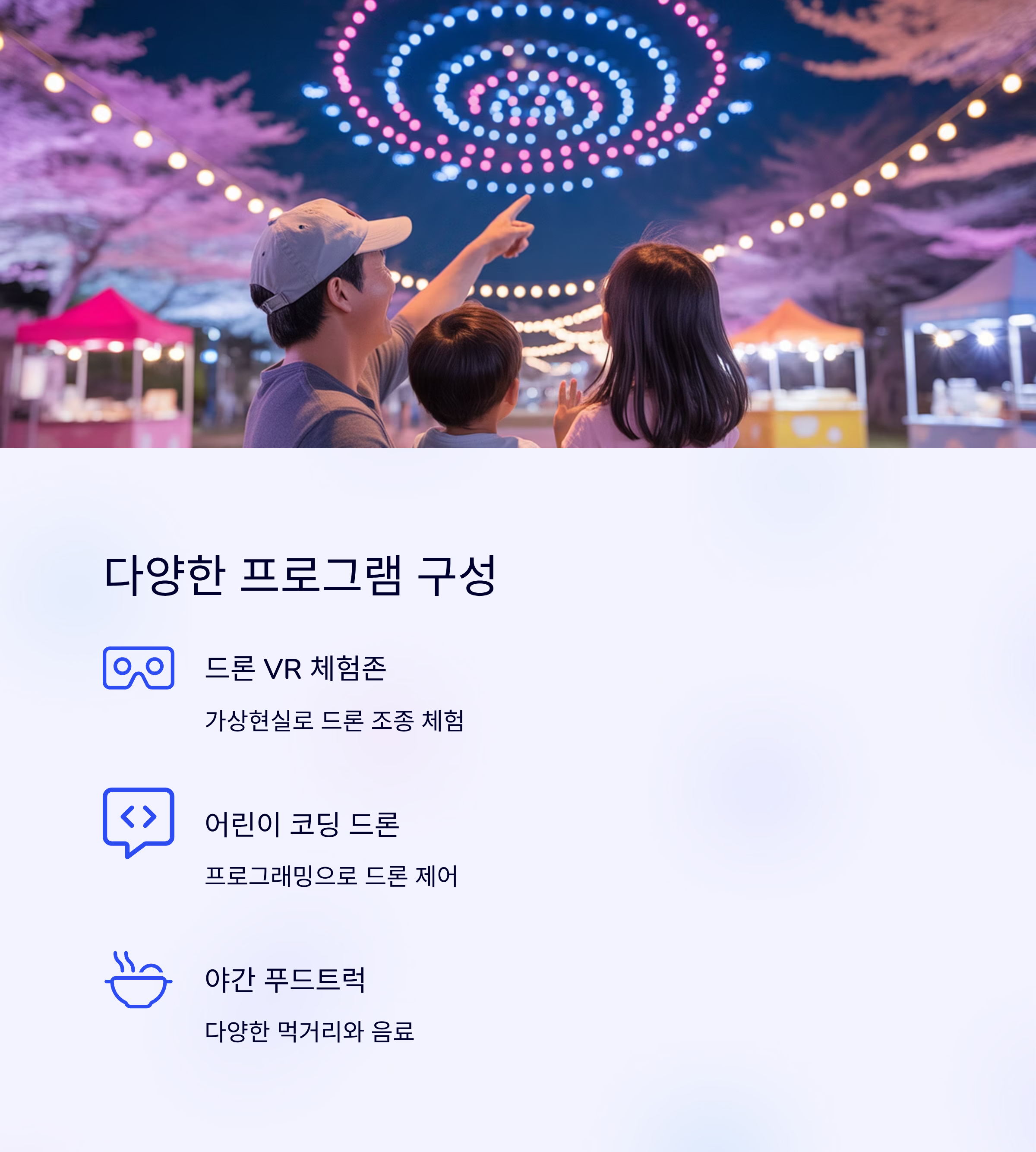 드론 VR 체험존, 어린이 코딩 드론 부스, 야간 푸드트럭 라인도 함께 운영됩니다.