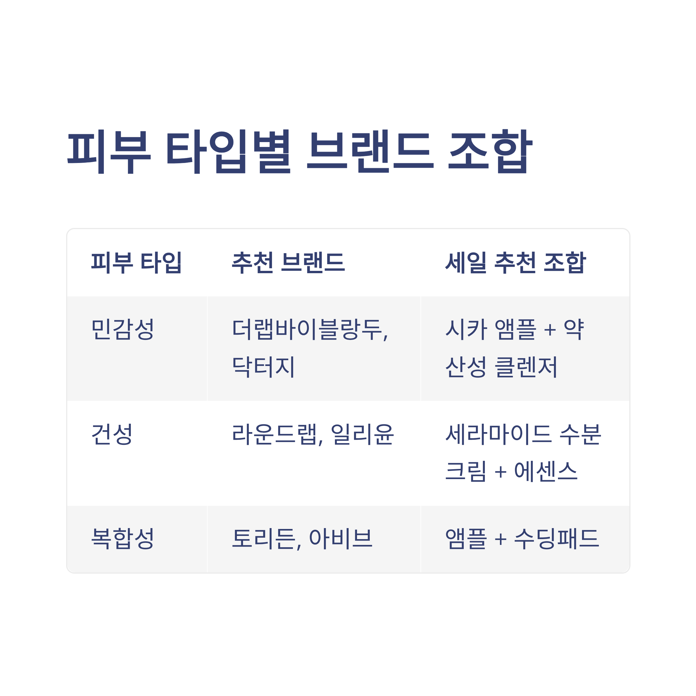 피부 타입별로 추천 조합을 구성해보면 아래와 같아요.