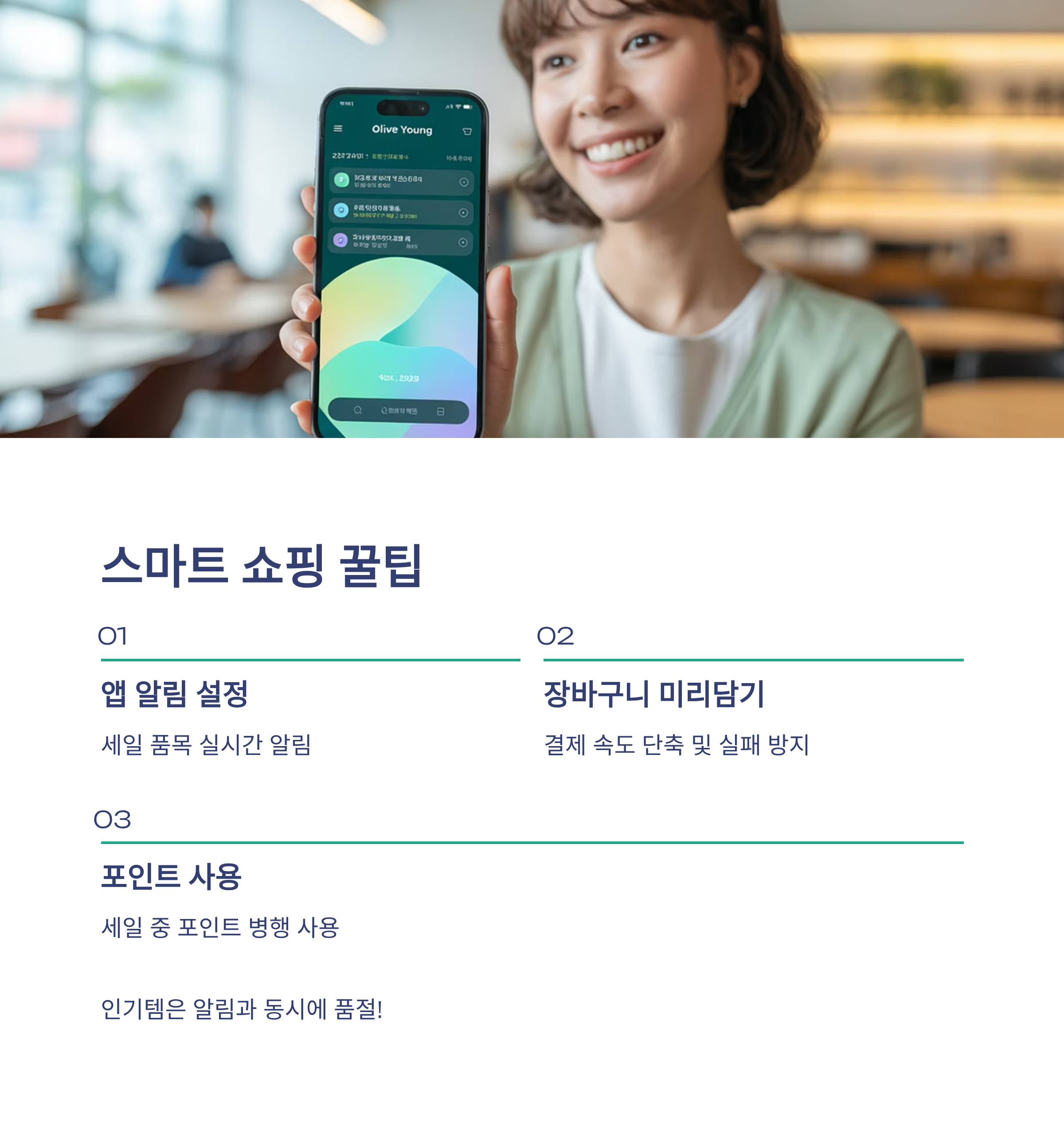 올리브영 앱에서 '세일 알림'을 켜두면 원하는 브랜드나 제품이 세일에 들어갔을 때 바로 알 수 있어요.