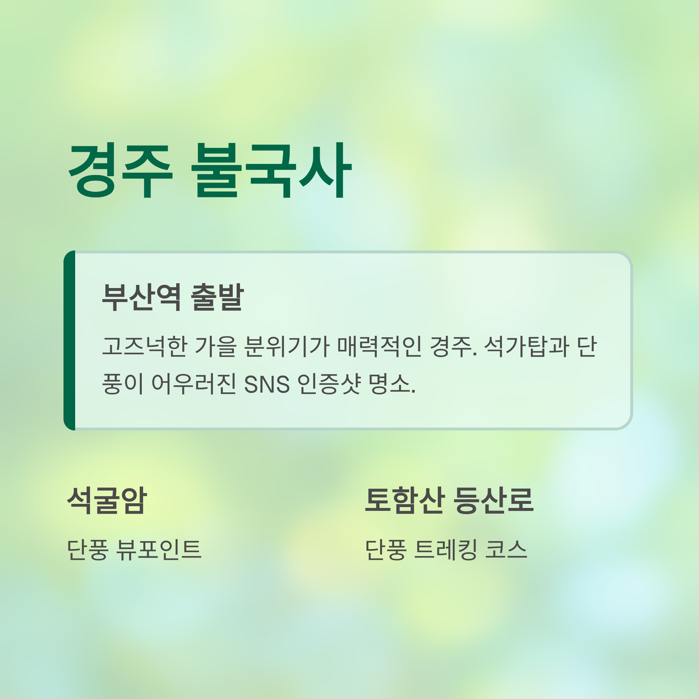 불국사 단풍은 이미 SNS에서 유명하죠. 석가탑과 단풍이 어우러진 그 풍경은 꼭 눈에 담아야 할 장면이에요.