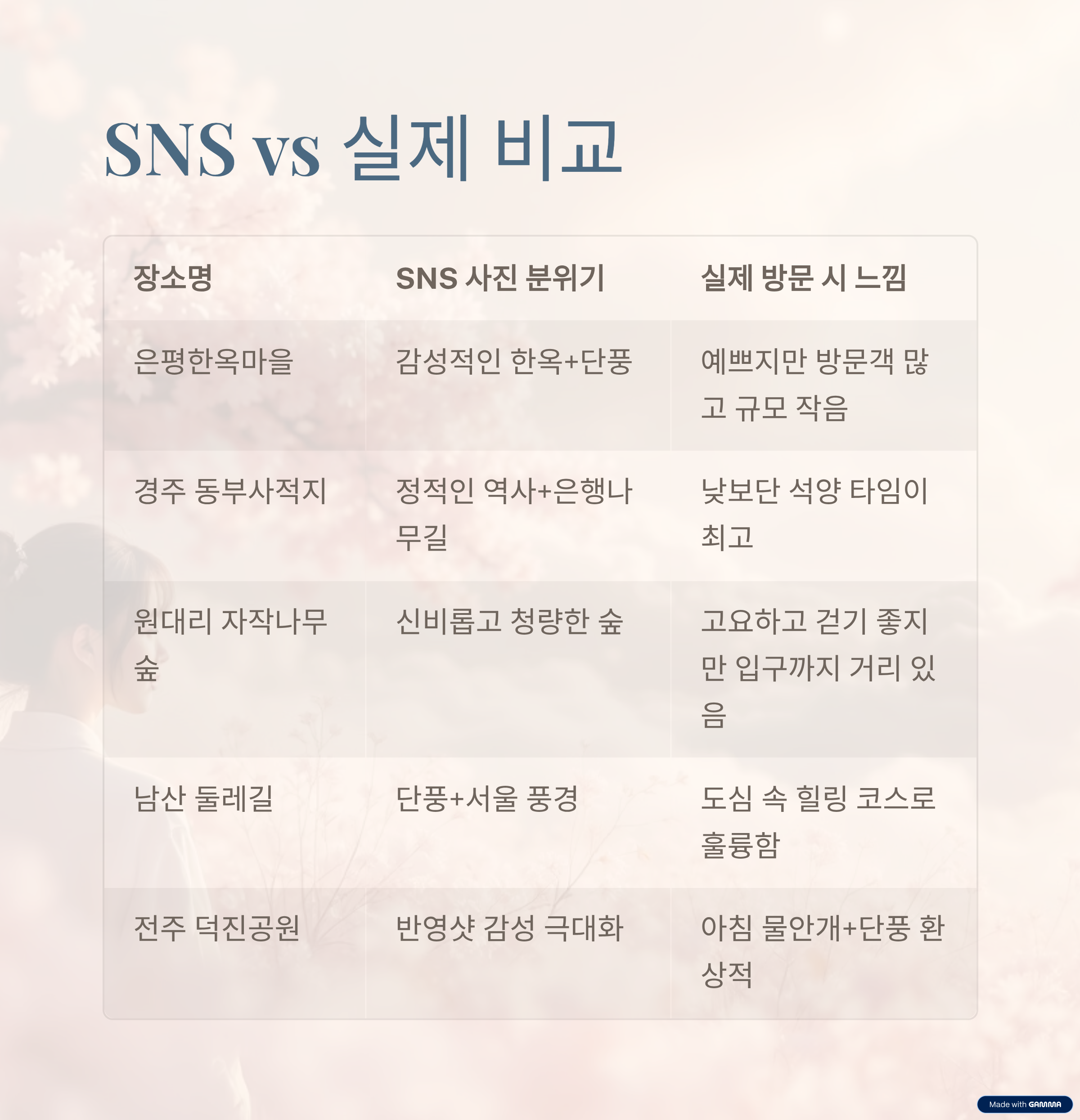 장소명 SNS 사진 분위기 실제 방문 시 느낌